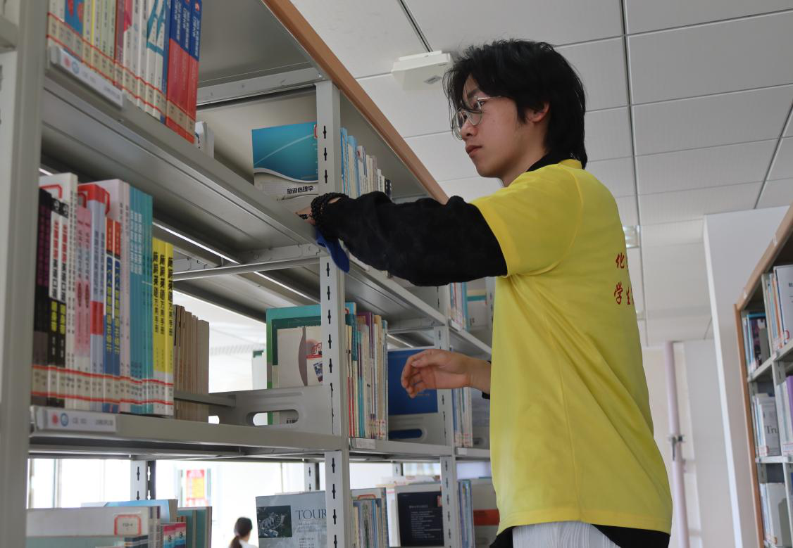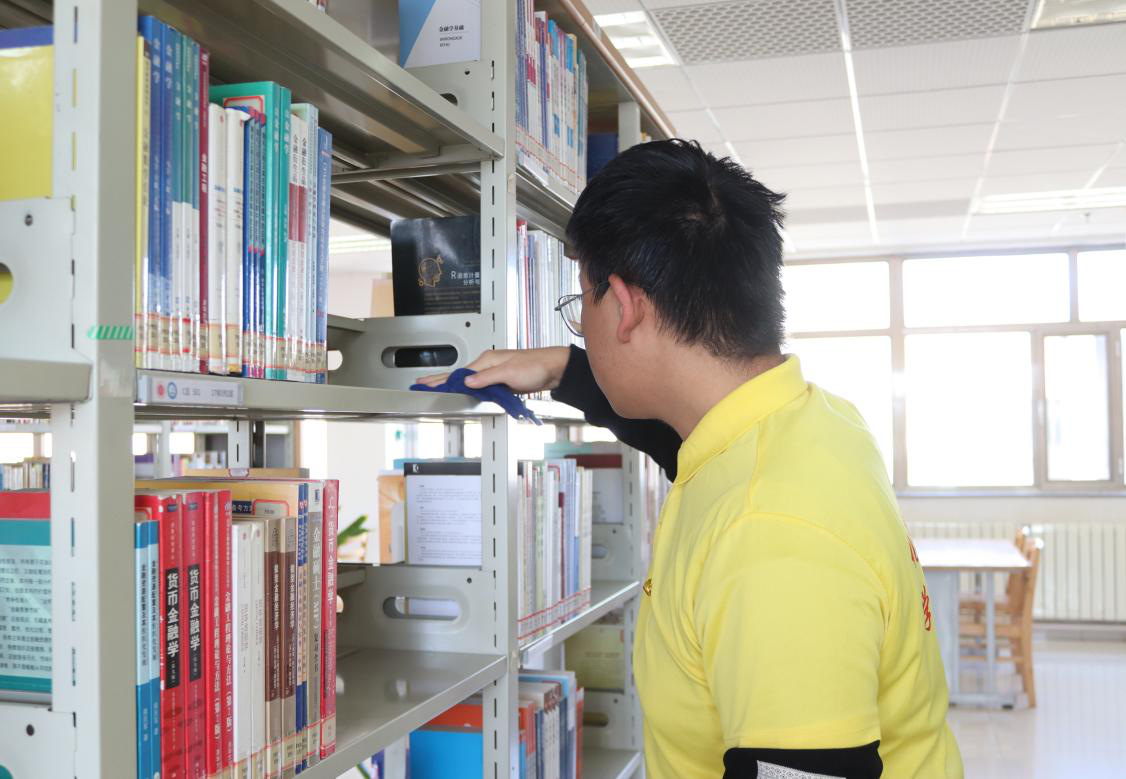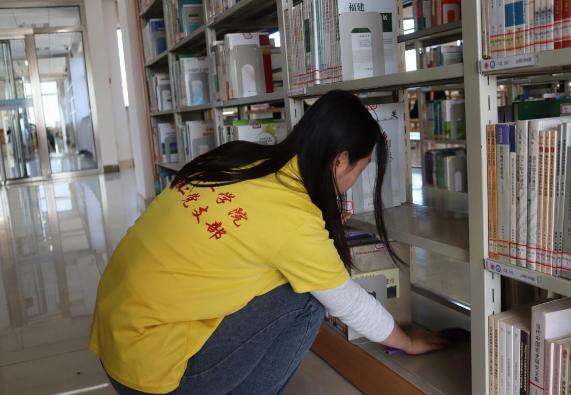 本次党日活动由图书馆负责人对参与活动的党员们进行明确的分工与任务安排。党员们依照所分配的任务,有条不紊地投入到工作中,他们严谨认真地擦拭着每一列书架上的灰尘,细致入微地整理书架、归类图书,同时不忘对桌椅进行擦拭,并对地面和卫生死角进行了彻底的清洁。党员们的辛勤付出,为图书馆营造了更加良好的学习氛围,为图书馆的整洁与美观贡献了自己的力量。