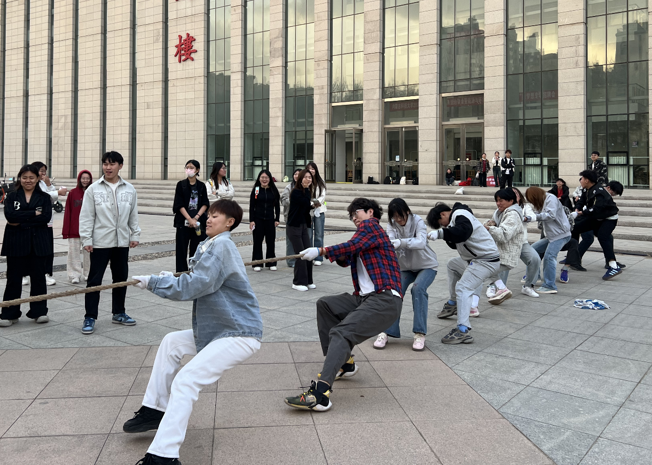 为锻造一支"敢担当、善协作、能创新"的学生干部队伍,4月7日,院团委以"凝“绳”聚力展风采"为主题,在逸夫楼西侧广场举办学生干部素质拓展拔河比赛。学生会、学生社团组织等全体部门在春日暖阳中展开力量与智慧的较量,用汗水和呐喊诠释团队精神。