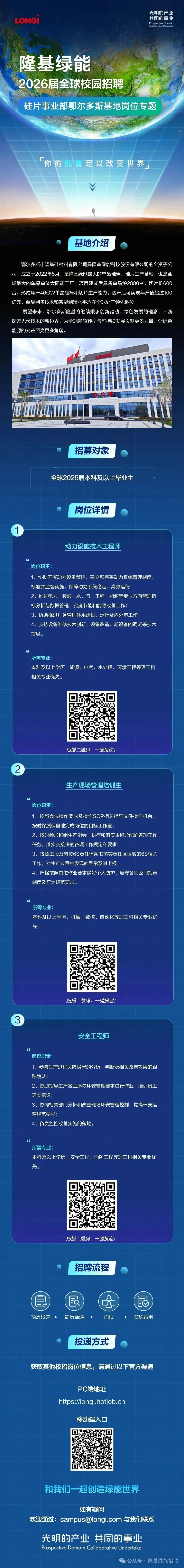 【招聘信息】隆基绿能2026届全球校园招聘|硅片事业部鄂尔多斯基地岗位热招中