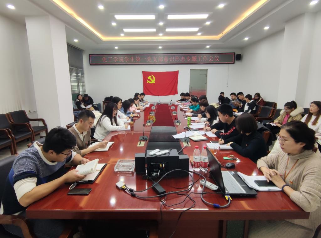 2020年12月22日下午14:30,yl6776永利集团学生第一党支部在逸夫楼E202组织全体党员召开了意识形态专题工作会议。会议由党支部书记王涛主持。