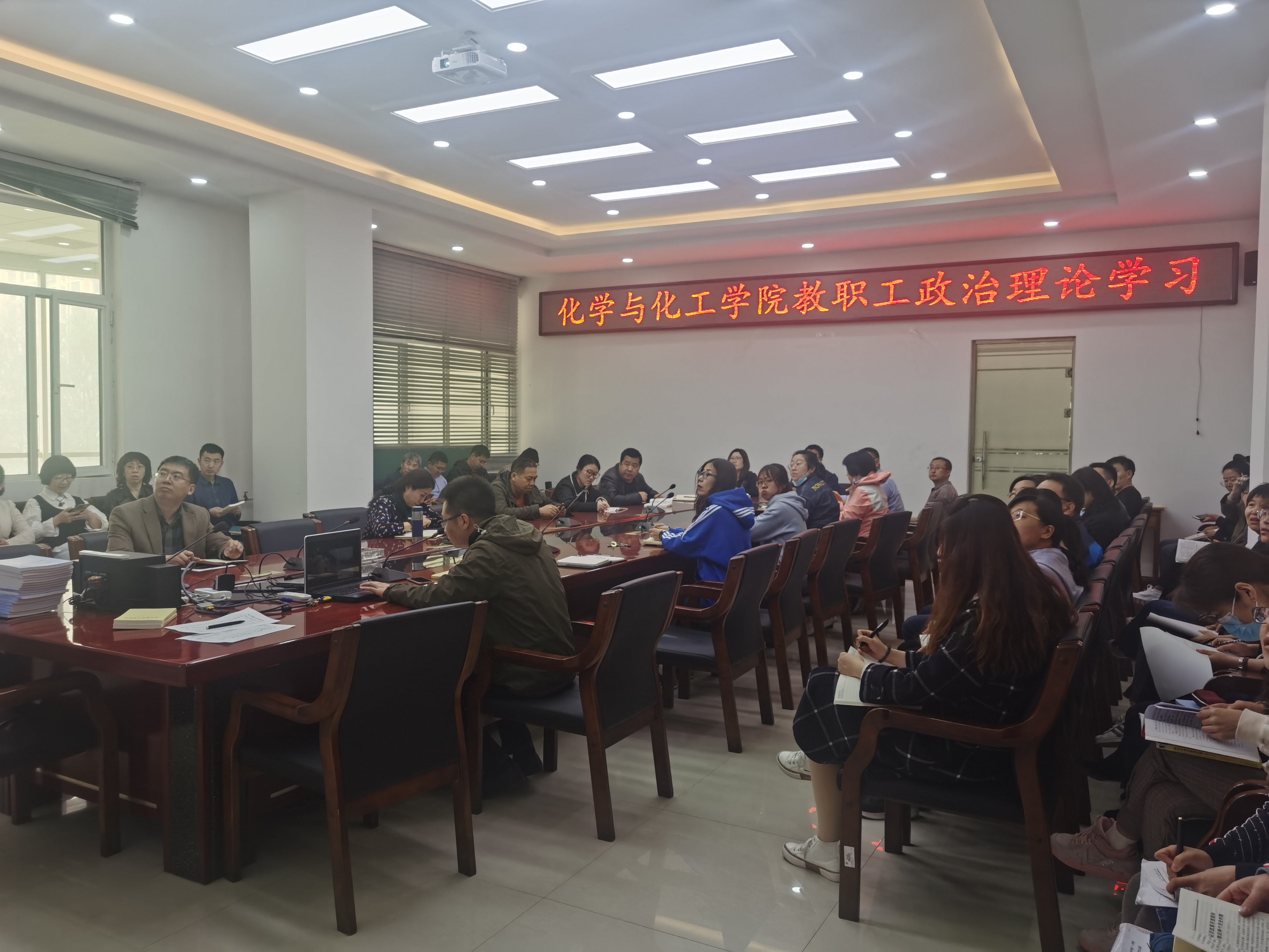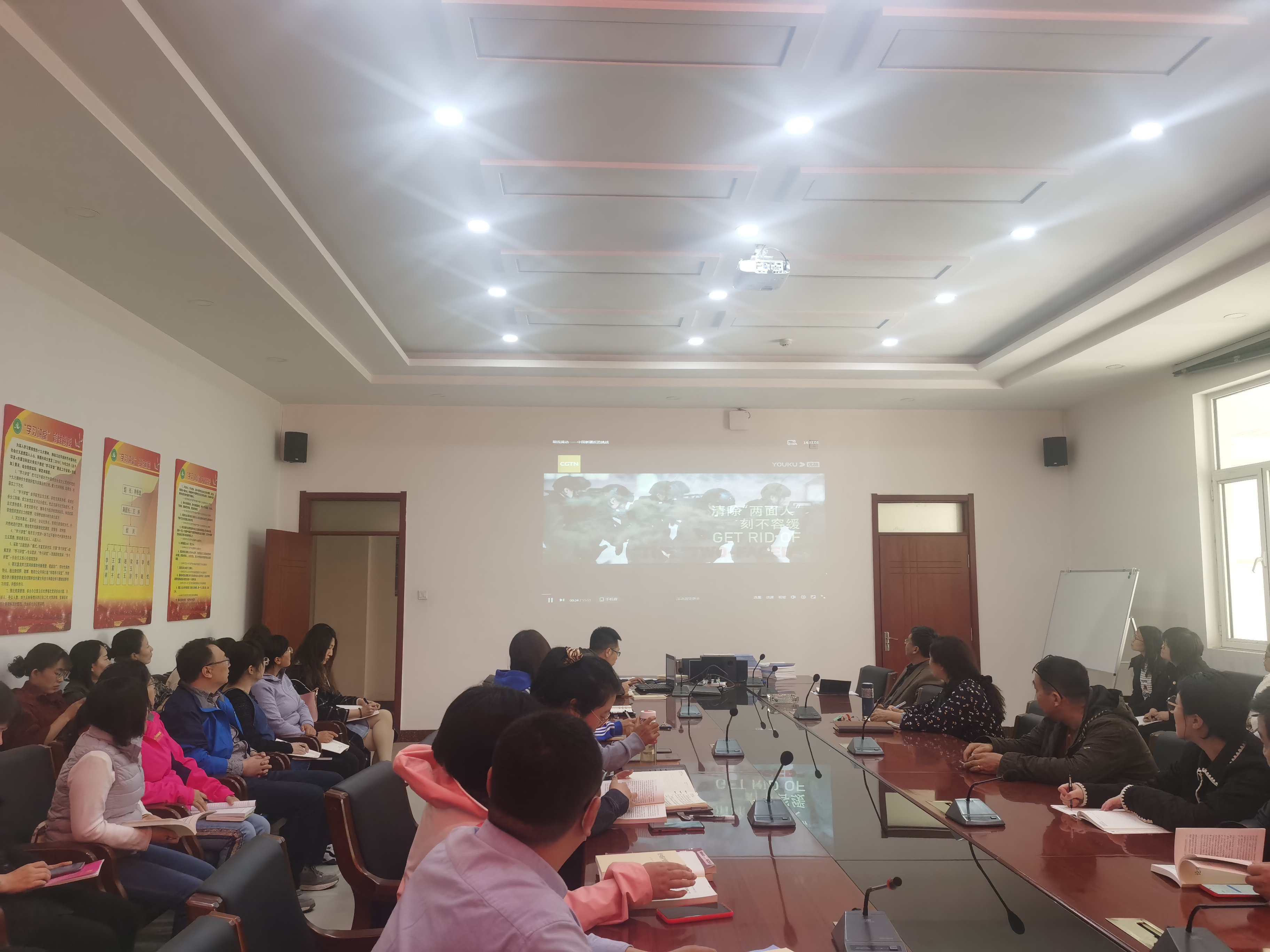 2021年4月15日下午14:30,yl6776永利集团在逸夫楼E202会议室开展教职工政治理论学习。全体教职工参加学习。本次学习内容为:观看纪录片《暗流涌动-中国新疆反恐挑战》。
