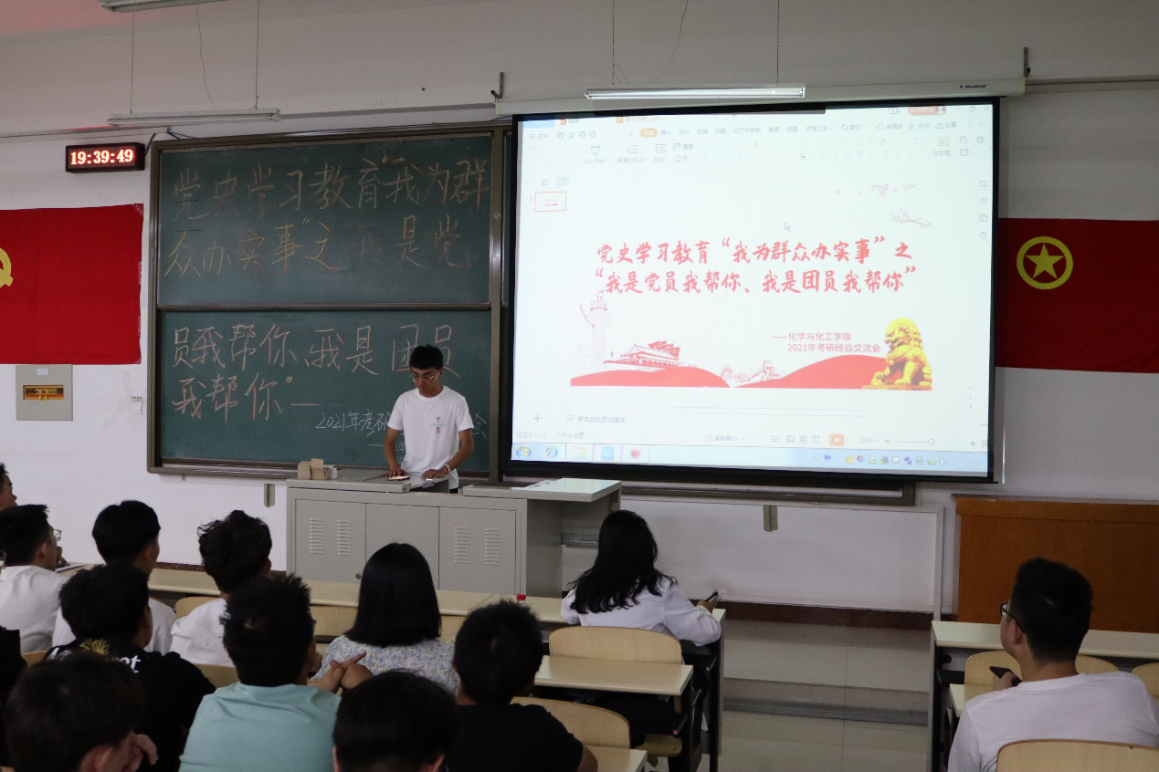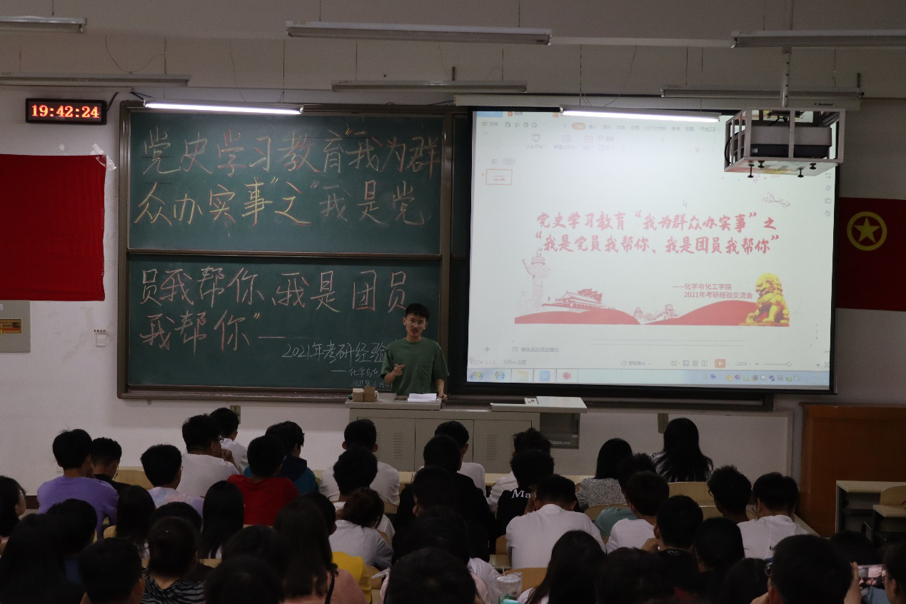 为响应党史教育“我为群众办实事”之“我是党员我帮你”、“我是团员我帮你”的号召,2021年6月4日晚上7:30,yl6776永利集团在逸夫楼G304教室举办2021年考研经验交流会。