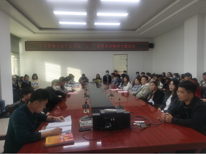 为深入学习贯彻习近平总书记“七一”重要讲话精神,根据自治区党委党史学习教育领导小组办公室相关要求,结合学校党史学习教育领导小组办公室《学习贯彻习近平总书记“七一”重要讲话精神专题宣讲工作方案》,10月21日下午16:00,学院党委书记聂立为学生作了题为“学习贯彻习近平总书记‘七一’重要讲话精神”的专题宣讲。