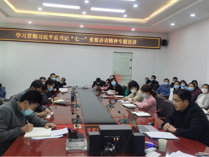 2021年11月11日下午13:00,yl6776永利集团在逸夫楼E202会议室开展教职工政治理论学习。本次学习邀请永利官网党委委员、宣传部部长赵永旺为我院教职工作学习贯彻习近平总书记“七一”重要讲话精神专题宣讲。