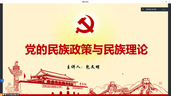 2022年10月27日19:30,yl6776永利集团邀请校校党委统战部包文明老师通过线上腾讯会议的方式开展民族政策宣讲活动。学院部分学生党员、积极分子和第二十七期团课学员参加。