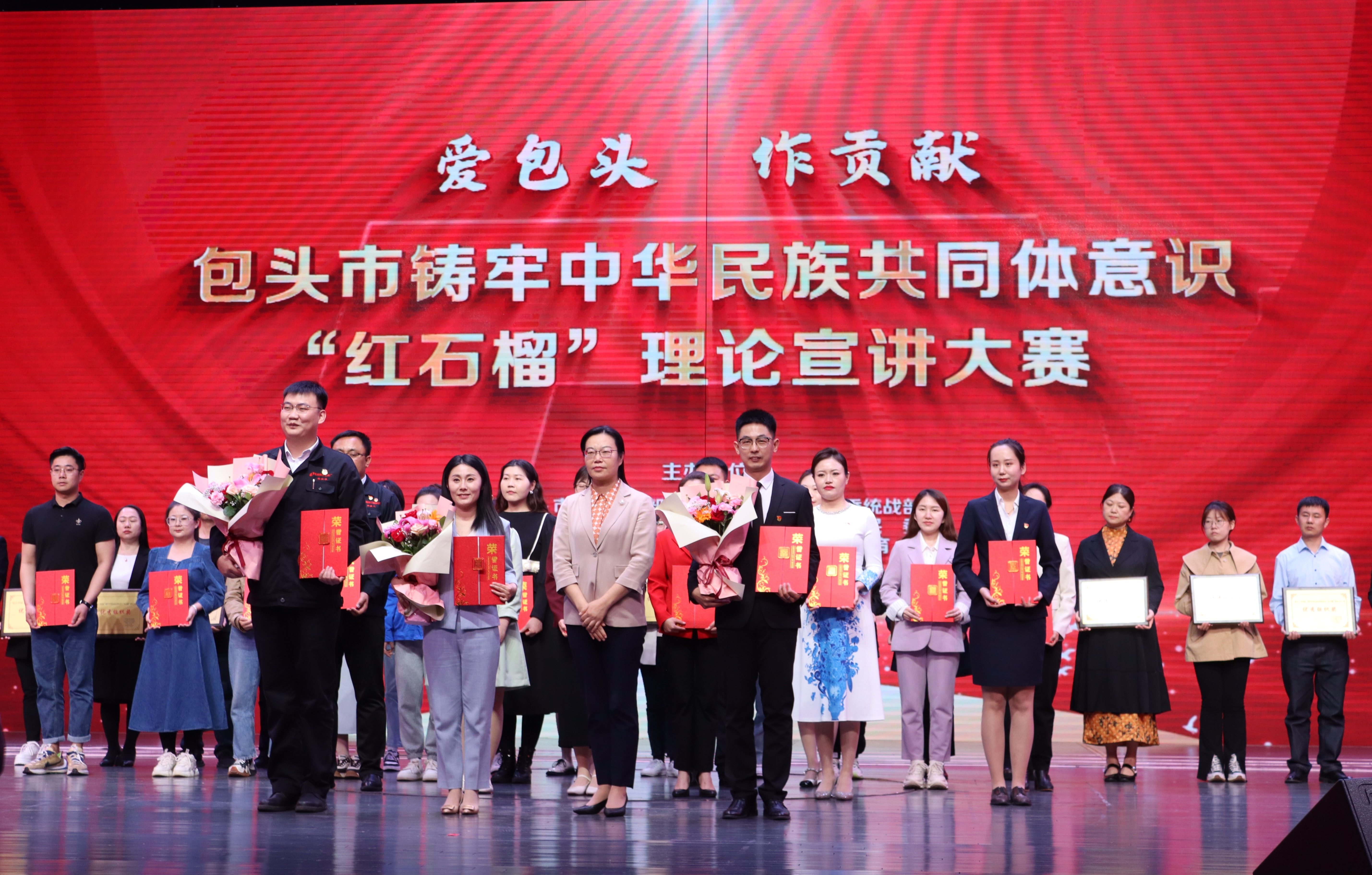 5月8日,由中共包头市委宣传部、中共包头市委统战部、中共包头市委讲师团、包头市民委、中共包头市直属机关工委、包头市教育局主办的“爱包头 作贡献”包头市铸牢中华民族共同体意识“红石榴”理论宣讲大赛在包头市电视台演播大厅圆满落幕。