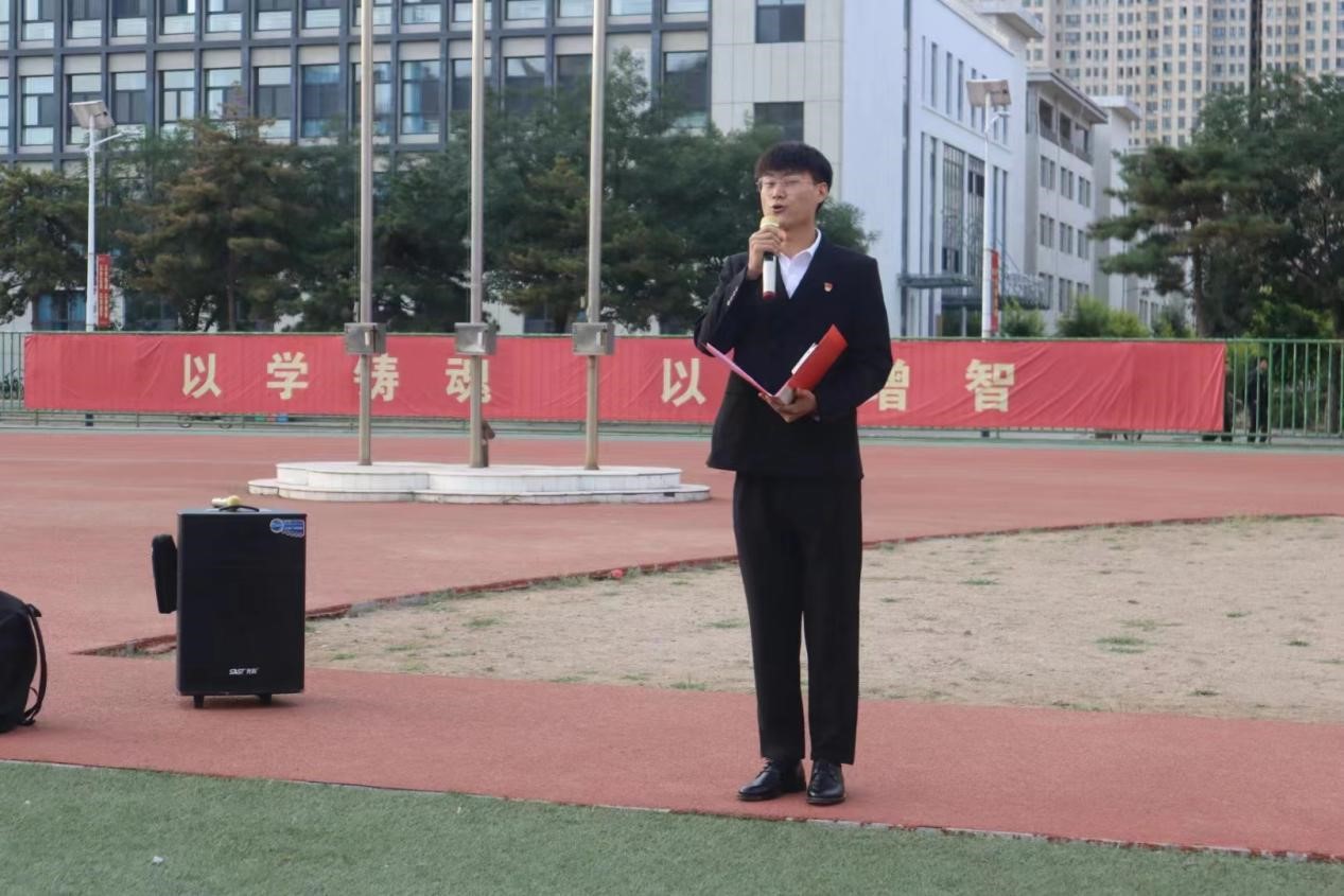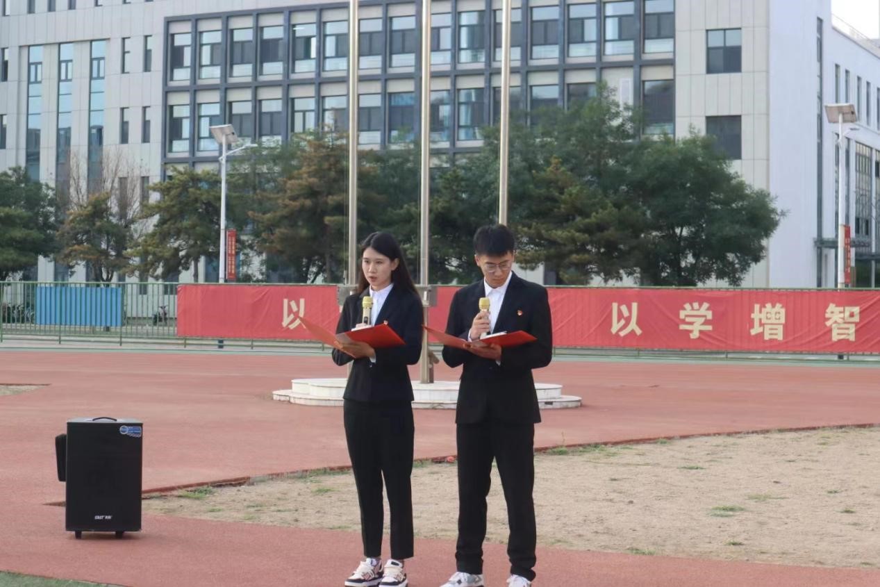 国旗护卫队的升旗手们护卫着鲜艳的五星红旗入场,伴随着《义勇军进行曲》的响起,老师和同学们集体行注目礼并共唱国歌,庄严肃穆。鲜艳的五星红旗冉冉升起,给予了每个人以温暖与力量。随后两组学生党员分别做了主题为《民族团结一家亲,同心共筑中国梦》、《草原母亲张凤仙的故事》的国旗下演讲,引导同学们牢固树立休戚与共、荣辱与共、生死与共、命运与共的共同体理念。