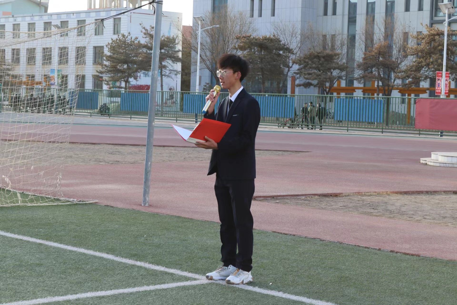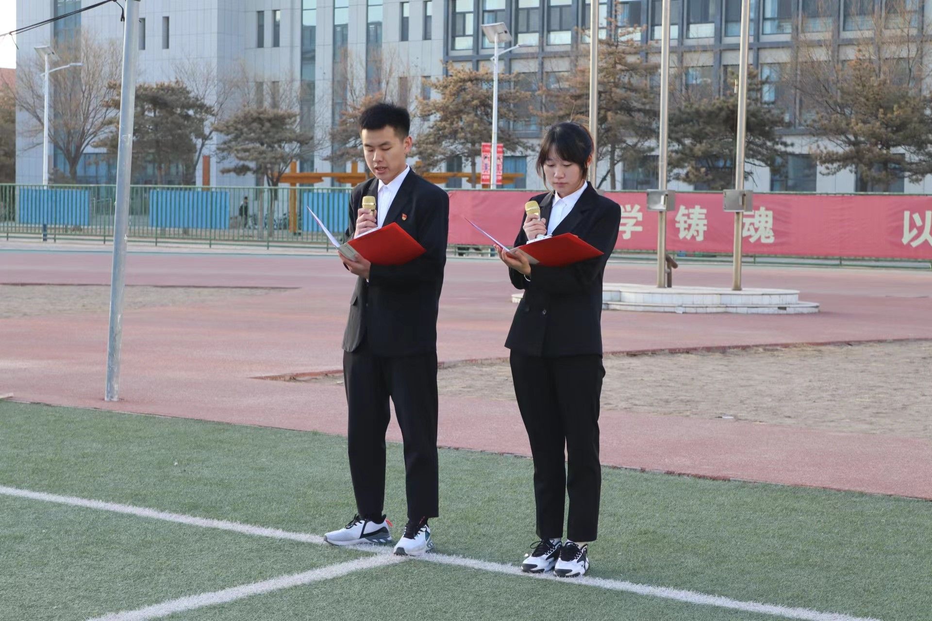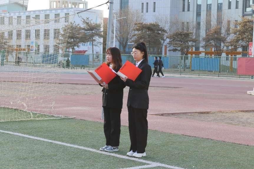 国旗护卫队的升旗手们护卫着鲜艳的五星红旗入场,伴随着《义勇军进行曲》的响起,老师和同学们集体行注目礼并共唱国歌,庄严肃穆。鲜艳的五星红旗冉冉升起,给予了每个人以温暖与力量。随后两组学生党员分别做了主题为《习近平总书记论法治思维》、《坚定法治自信》的国旗下演讲。
