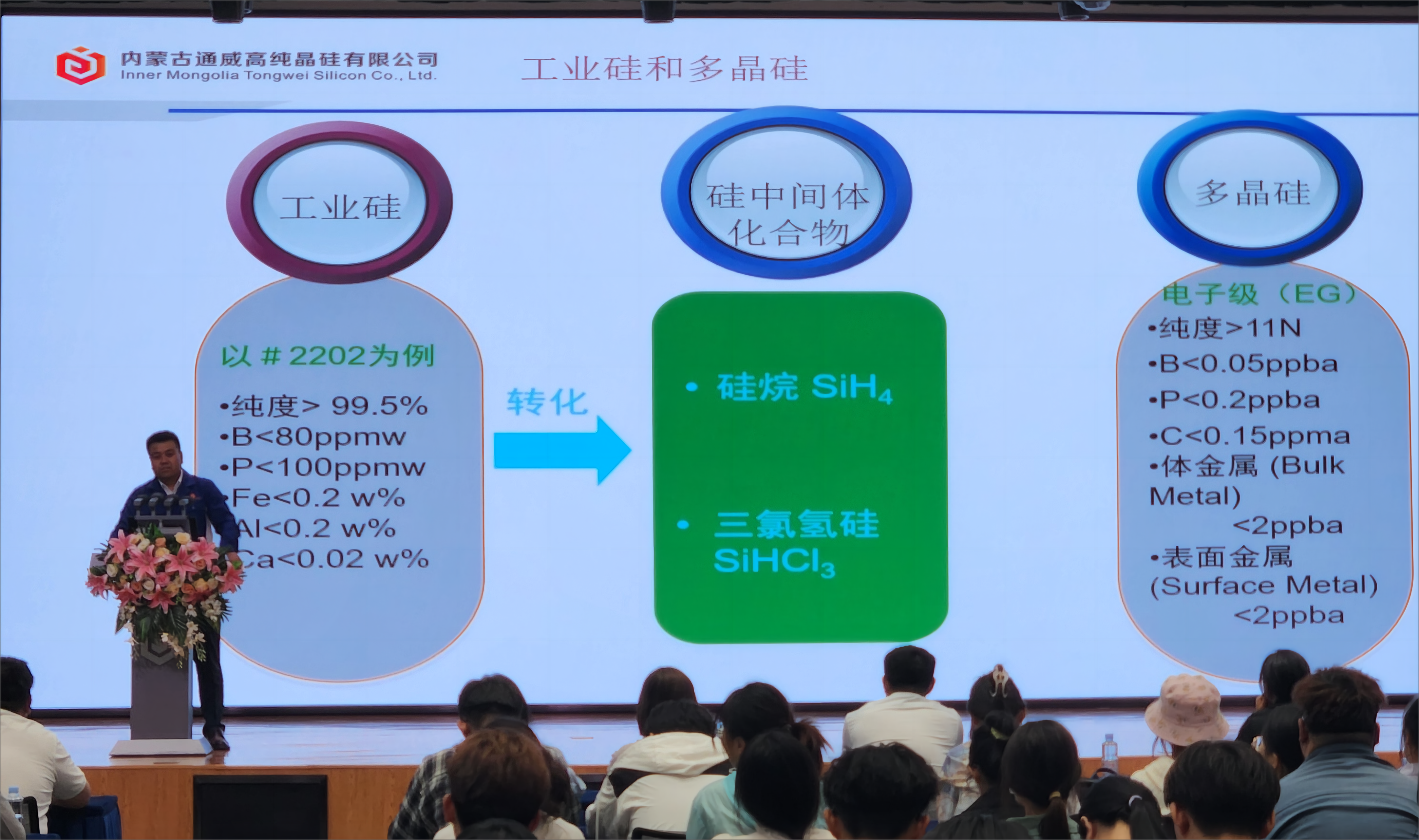 5月23日下午,硅业学院能源化学工程专业2022级全体同学来到内蒙古通威高纯晶硅有限公司,开展了《新能源技术前瞻》课程的又一次学习。课程包括实地参观学习、专业授课和企业人才培养模式介绍等三部分。在厂区参观环节,学生们参观了高纯晶硅企业的生产和中控现场,对高纯晶硅产业有了更为深入地了解。专业授课环节特邀到了内蒙古通威高纯晶硅有限公司生产部田志飞部长进行《多晶硅生产工艺》教学。田部长作为永利官网杰出校友代表,多年深耕于高纯晶硅工艺优化与研发一线。他结合自己多年的生产实践经验,为同学们详细讲授多晶硅生产工艺的具体流程和技术需求,着重分析了《分离工程》《化工原理》等本科专业课程在多晶硅生产工艺实践中的重要地位和紧密联系,倡导同学们要重视本科专业学习,学好、学活专业课。在企业人才培养模式介绍环节,人事行政部副部长周美香为同学们介绍了通威的人才发展路径和具体案例。在整个见习与授课过程中,同学们更详细地了解了多晶硅生产工艺的具体流程和现场生产环节,也更加明晰了通威的人才培养模式,对未来的职业发展和规划有了清晰的方向。