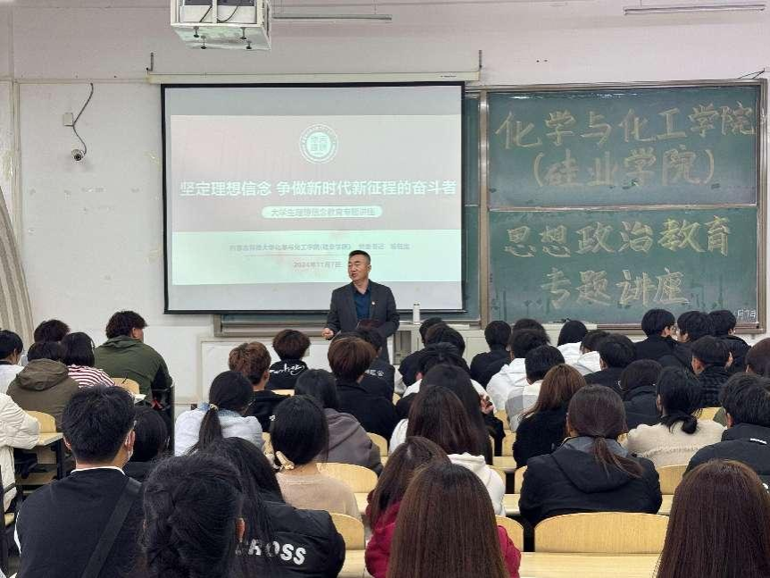 讲座从“树立专业自信,坚定化工责任大志向”“矢志专业学习,锤炼安身立命真本领”“坚持体育锻炼,引领大学生活新风尚”“增强综合能力,争做全面发展‘多面手’”“守住红线底线,争做明纪守法‘明白人’”等五个方面展开,通过一系列丰富生动的事例,引导同学们拓展专业视野、坚定理想信念、树立职业理想、守好意识形态底线。