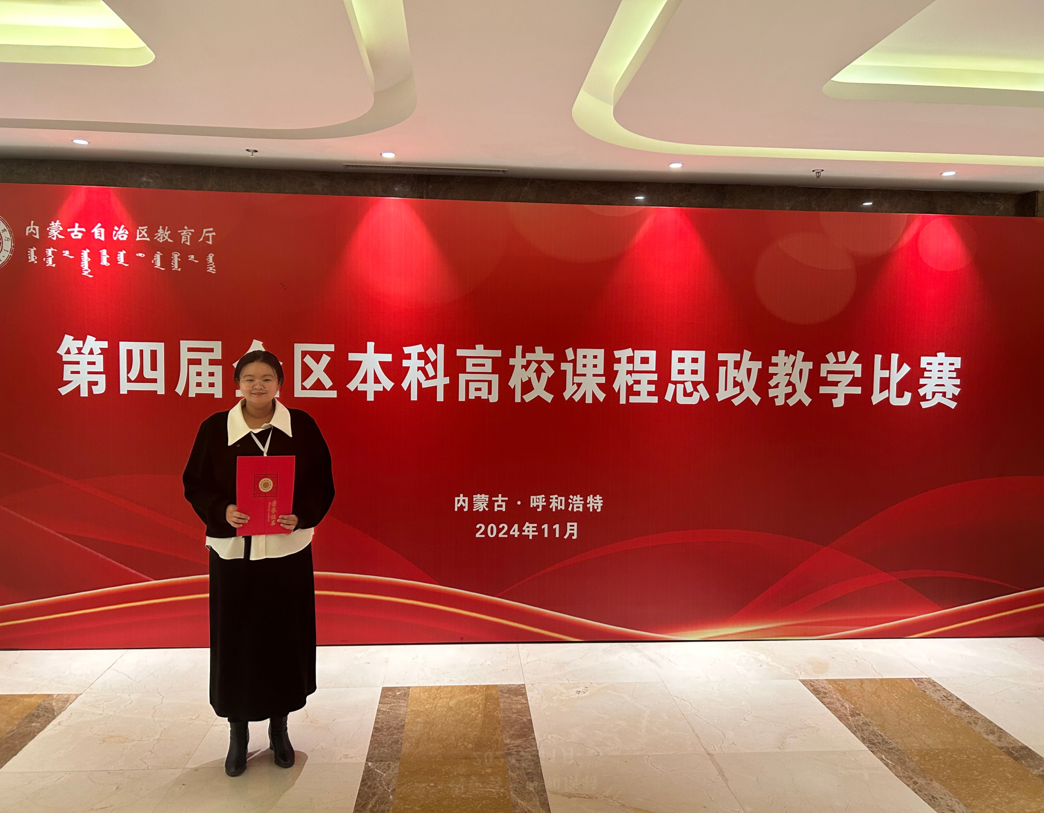 12月1日,由内蒙古自治区教育厅主办的第四届全区本科高校课程思政教学比赛在呼和浩特圆满落幕,经过激烈角逐,我院教师周蔚获公共课组一等奖,赵悦获专业课组二等奖。