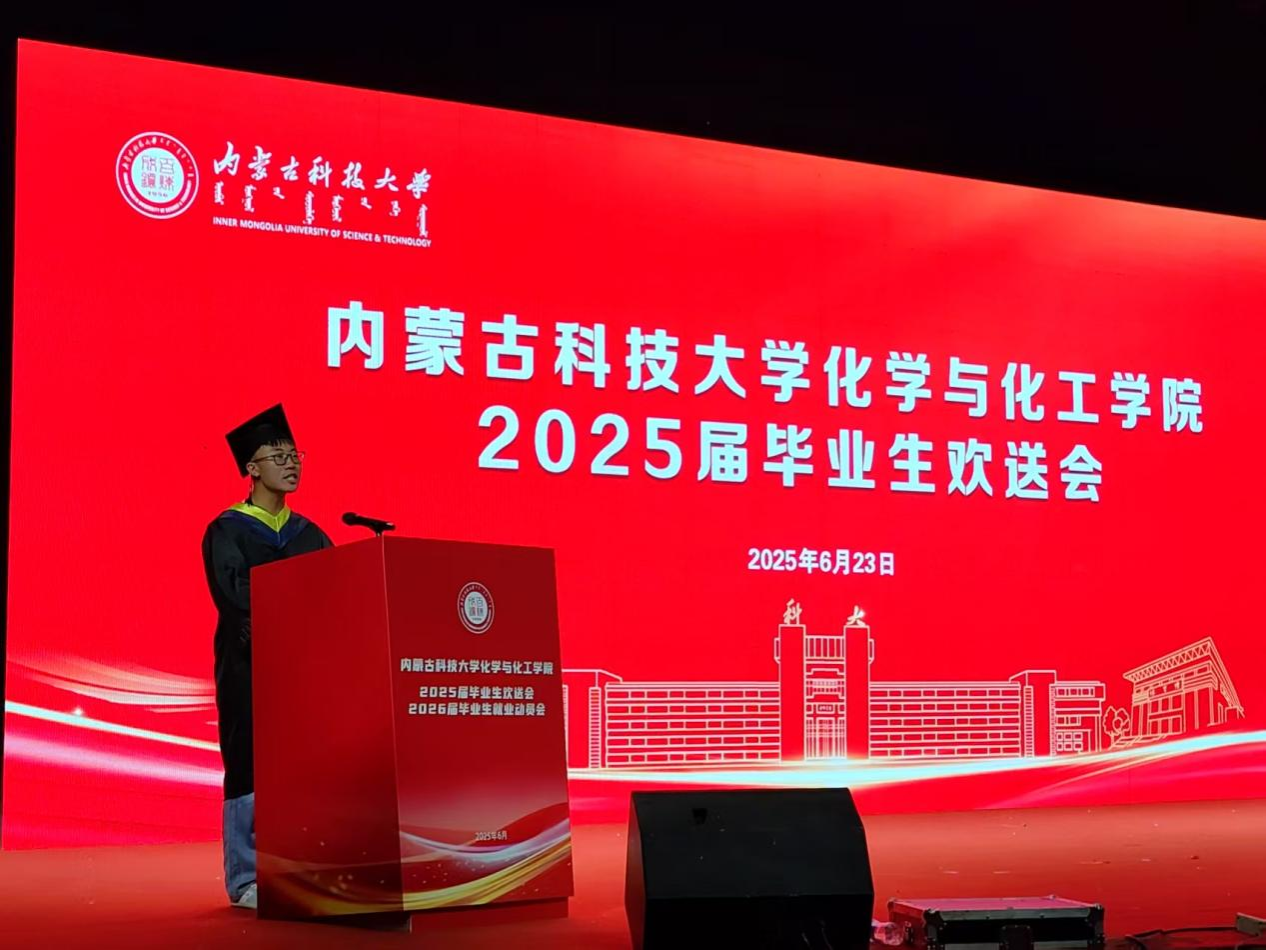 大屏幕上跃动的像素,将四年青春凝成永恒。当毕业纪念视频开始播放,实验室里跃动的蓝色钴溶液、图书馆倾泻而下的晨光、军训时被汗水浸透的迷彩肩章,都在光影中苏醒。记得在有机化学课上为共振式争得面红耳赤,在考研自习室用咖啡渍勾勒凌晨四点的星轨,那些被戏称为"发际线保卫战"的日日夜夜,此刻都镀上了温暖的琥珀色。"落其实者思其树,饮其流者怀其源",临别之际,毕业生代表向到场教师敬献手写贺卡,纸短情长,道不尽师恩难忘。