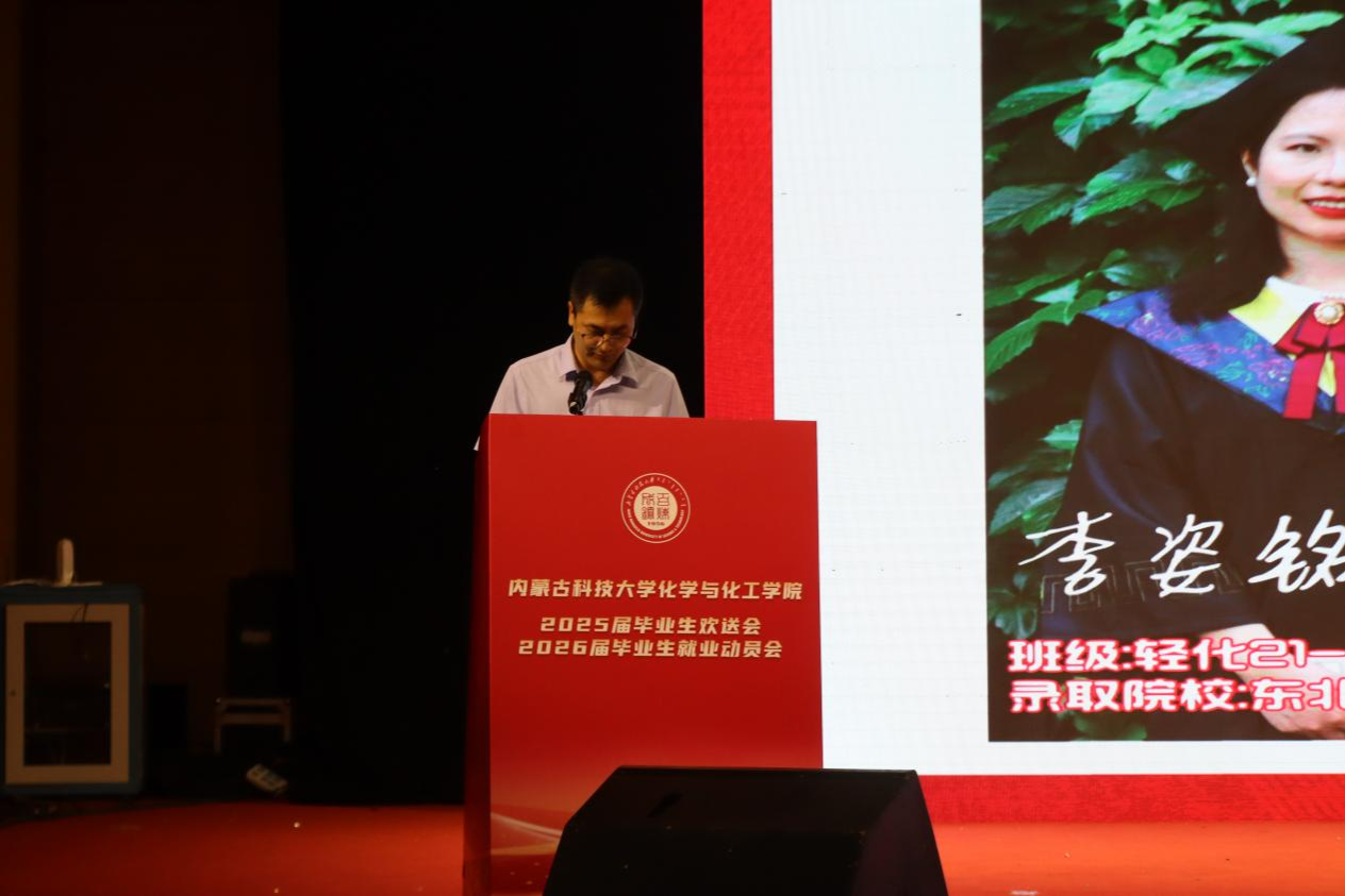 庞赟佶副院长庄严宣读表彰名单时,93位优秀毕业生依次登台。他们中有发表SCI论文的科研新锐,有斩获全国化工设计大赛金奖的团队核心,更有放弃保研资格选择西部支教的青年党员。毕业班班主任宋美婷的寄语尤为动人:"你们在通风橱前验证的不仅是反应机理,更是科学信仰。请永远记得:烧杯可以清洗重来,人生却只有单程实验。"