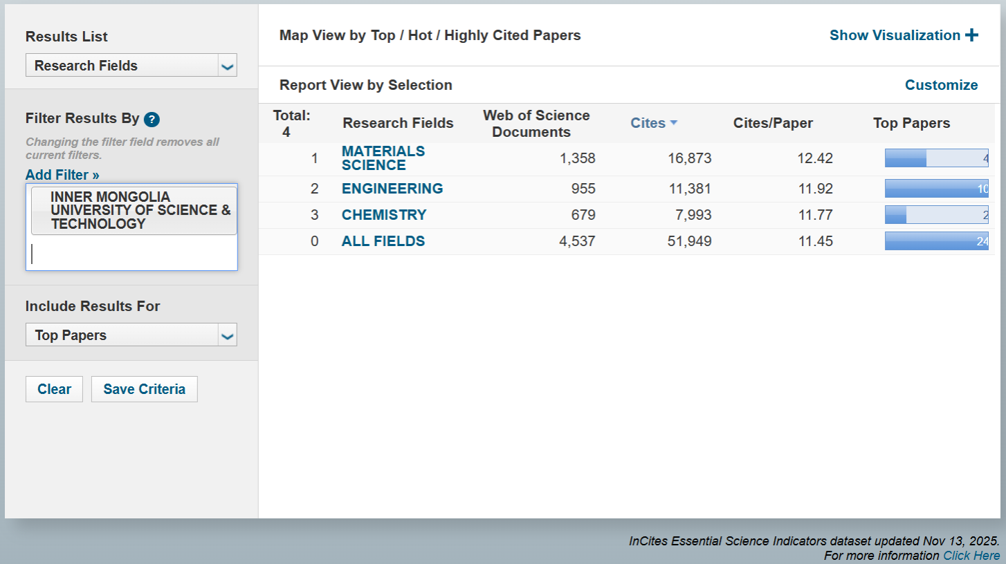 据科睿唯安(Clarivate)2025年11月发布的最新一期《基本科学指标数据库》(Essential Science Indicators,简称ESI)统计数据显示,永利官网化学(Chemistry)学科首次进入ESI全球排名前1%,实现永利集团历史性突破,标志着我校化学学科进入国际高水平学科行列。永利官网目前已进入ESI前1%的3个学科具体表现如下: