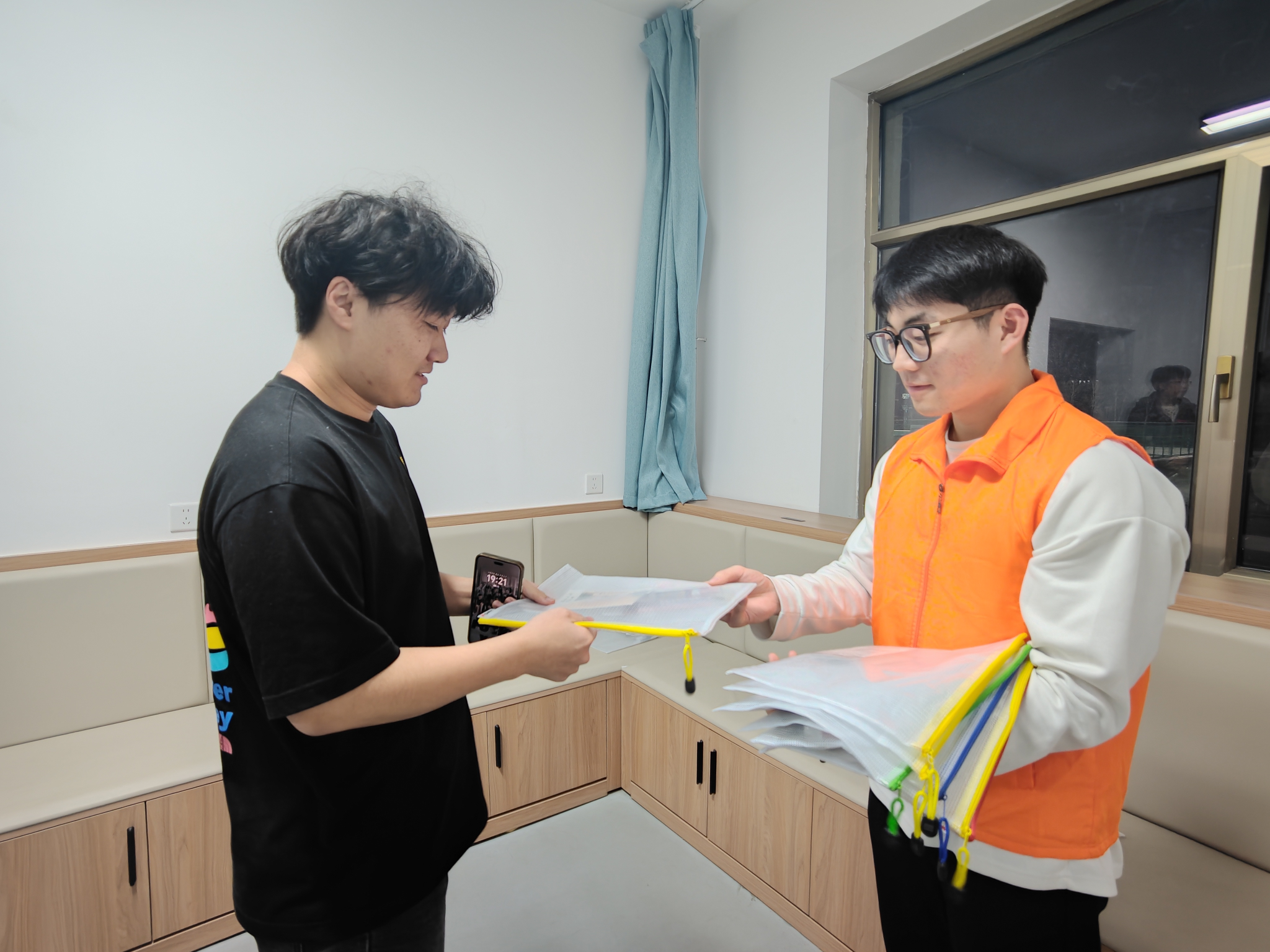 12月19日,学生党员分组行动,深入毕业生宿舍,将满载情谊的暖心礼包送至每一位考研学子手中。走访过程中,党员同学与备考学子亲切交流,细致询问复习进度与生活状况,并叮嘱大家注意劳逸结合、保持平稳心态。他们代表学院送上“一'研'为定”的诚挚祝愿,传递了集体的温暖与支持。收到礼包的同学们纷纷表示,学院的关怀既实用又暖心,有效缓解了备考压力,也让迎考的信心与动力更加坚定。