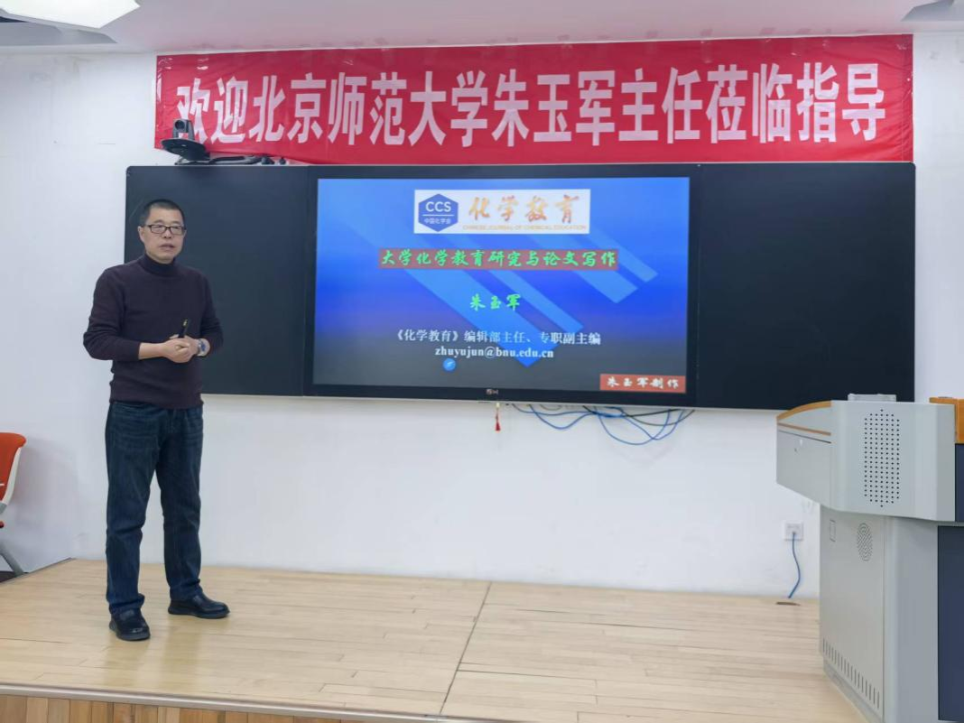 3月30日上午,yl6776永利集团在明德楼H508举办教学研究写作能力提升专题研修活动,特邀《化学教育》专职副主编、编辑部主任朱玉军博士作题为《化学教育期刊特点与学术论文写作规范》的专题讲座。本次活动由学院教学副院长庞赟佶主持,全院教学骨干教师代表全程参加研修。