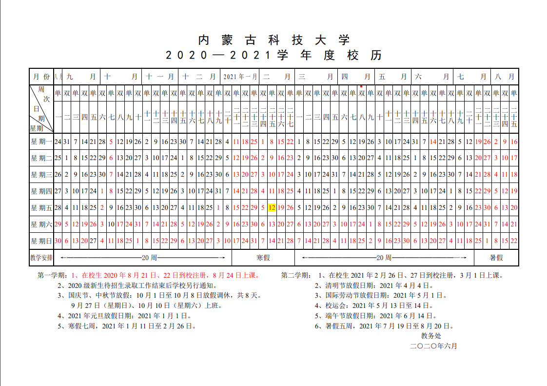 2020-2021年度校历