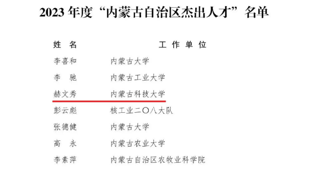 2023年12月29日,内蒙古自治区人民政府发布《内蒙古自治区人民政府关于表彰奖励2023年度“内蒙古自治区杰出人才奖”获奖人员的通报》,我院副院长赫文秀教授入选“内蒙古自治区杰出人才”。其针对能源存储与转化反应存在材料活性低、电荷传递受限等技术难题、面向大规模储能锂离子电池和钠离子电池对低成本、宽温域、高安全稳定性的重大需求,聚焦稀土掺杂和碳基纳米能源材料制备新方法,以材料设计和合成技术为基础通过多学科交叉与深度融合,掌握关键材料合成、电化学反应过程中微观机理机制与构效关系科学规律,改善其制备工艺并优化放大,对我国新能源产业以及内蒙古自治区光伏、风能等高效规模化利用,实现风-光-储技术一体化发展具有重要意义。