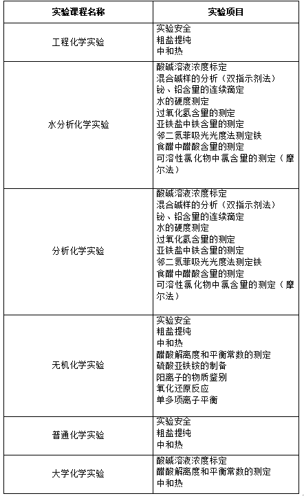 四、基础化学教学部承担的本科教学实验