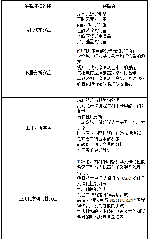 三、应用化学系承担的本科教学实验